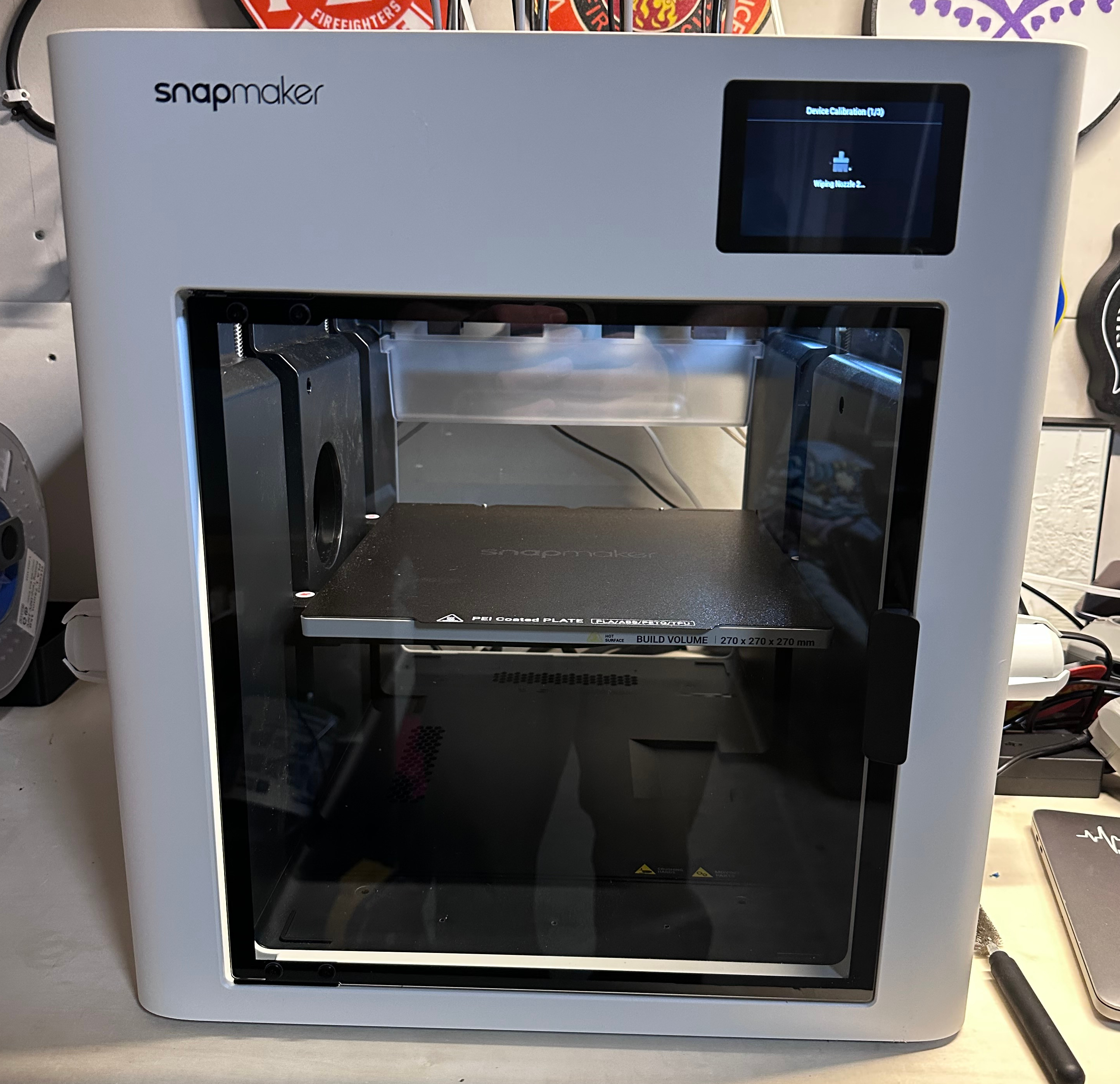 Meet the latest addition to our collection - the SnapMaker U1. We supported development of this printer on KickStarter. It's a 4 head printer which can print in 4 colors, but it doesn't waste filament like other color printers, including our BambuLab P1S, do. The print area is 270mm x 270 mm x 270 mm. So far we have printed a dragon and now we are printing an Orca. Prints are a lot faster because it doesn't have to swap filament, it only has to swap the head. The Orca is going to take 2 hours, whereas the same print on the P1S will take 6 hours. This printer will save a lot of time and filament. Liam calls this printer the "new machine". He says the New Machine is very fast and he gives it 5/5 stars!